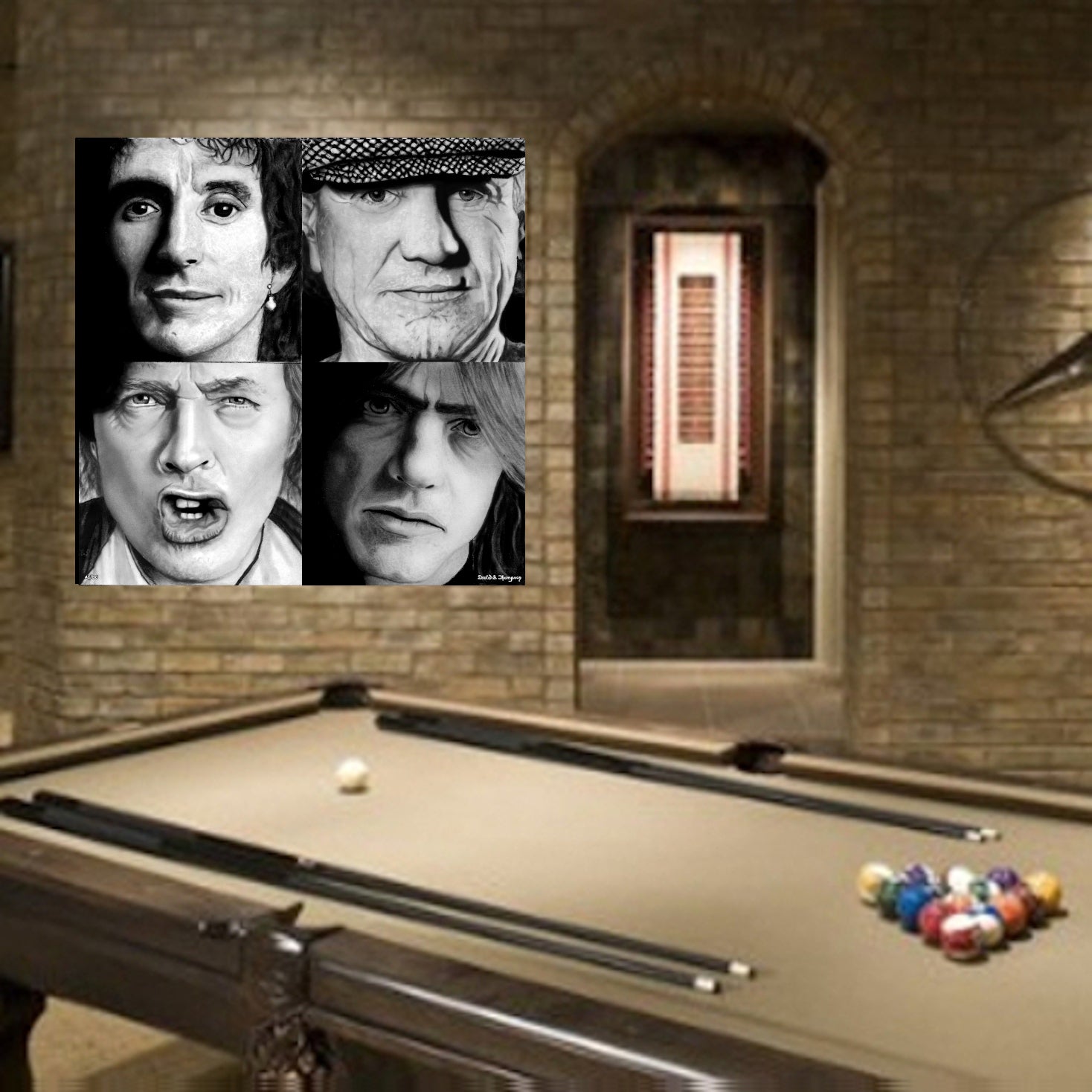 The Face of Music Limited Edition Hand Drawn Masterpiece Portrait Collection by Master Artist David S. Thompson of¶ÿBon Scott, Brian Johnson, Malcolm Young and Angus Young from AC/DC.