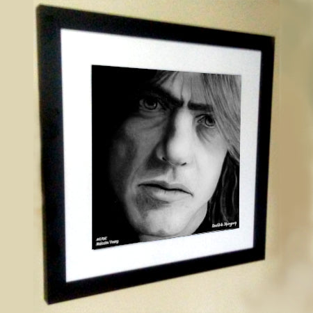 The Face of Music Limited Edition Hand Drawn Portrait by Master Artist David S. Thompson of Malcolm Young from AC/DC.