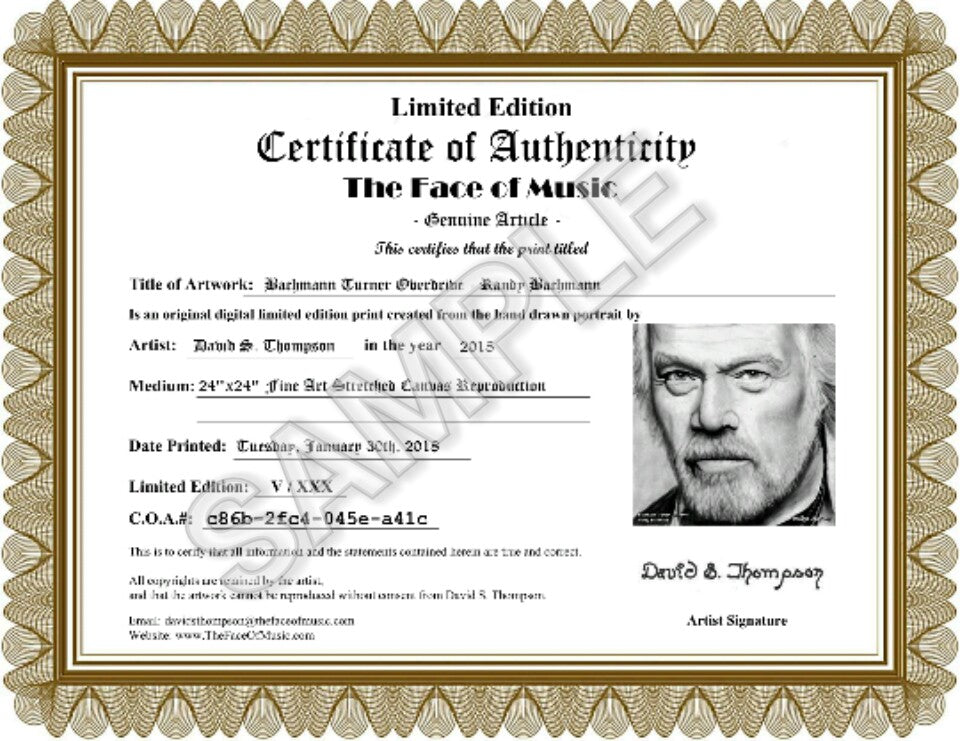 Each artwork is personally signed and is accompanied with an individual Limited Edition Certificate of Authenticity with its own unique C.O.A. Number and personal signature ensuring you're getting a unique The Face of Music portrait by Master Artist David S. Thompson.