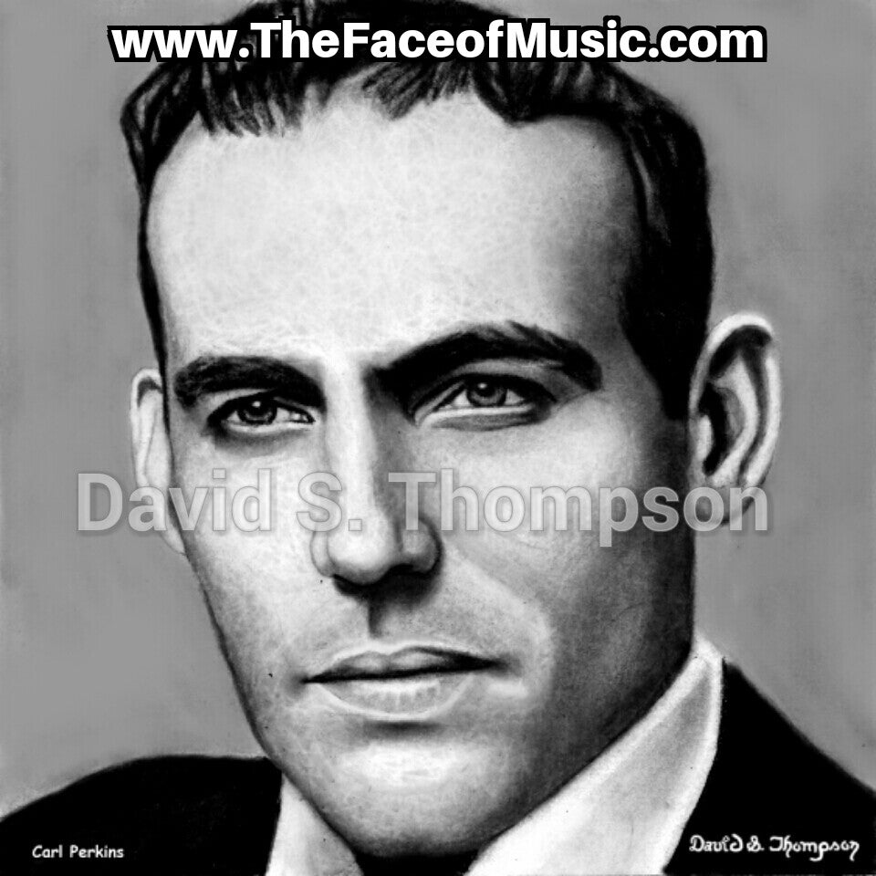 The Face of Music Limited Edition Hand Drawn Portrait by Master Artist David S. Thompson of Carl Perkins.
