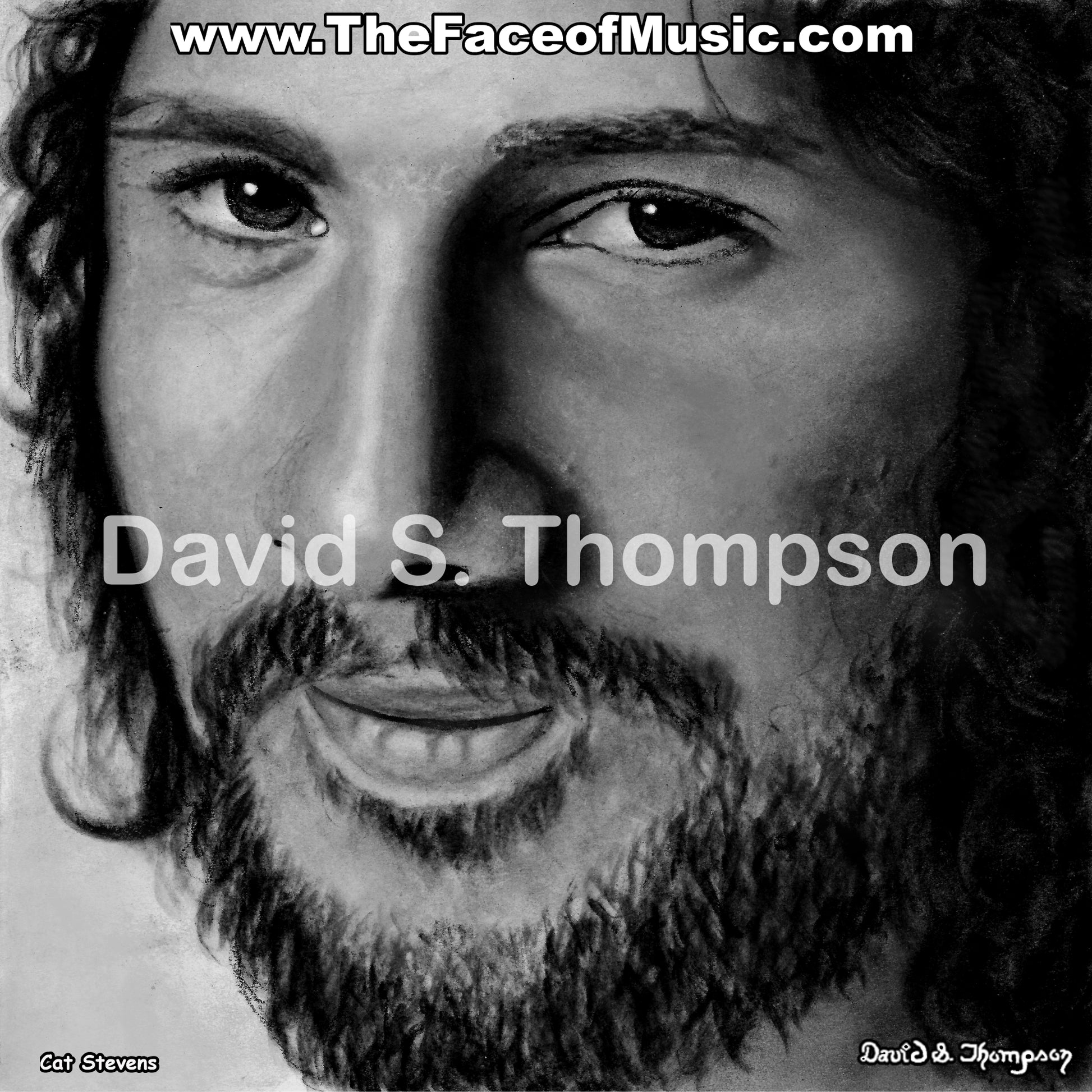 The Face of Music Limited Edition Hand Drawn Portrait by Master Artist David S. Thompson of Cat Stevens.