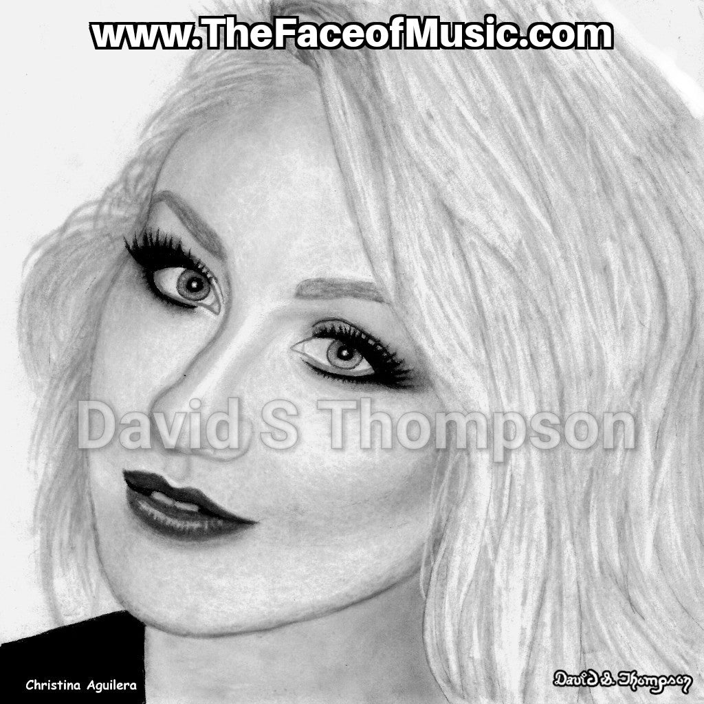 The Face of Music Limited Edition Hand Drawn Portrait by Master Artist David S. Thompson of Christina Aguilera.