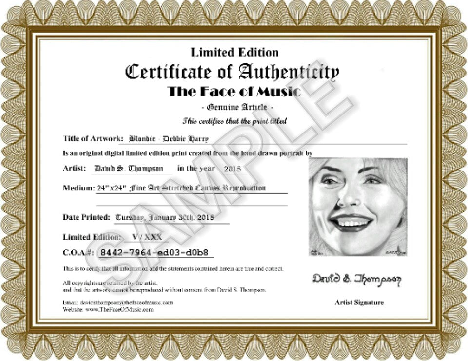 Each artwork is personally signed and is accompanied with an individual Limited Edition Certificate of Authenticity with its own unique C.O.A. Number and personal signature ensuring you're getting a unique The Face of Music portrait by Master Artist David S. Thompson.