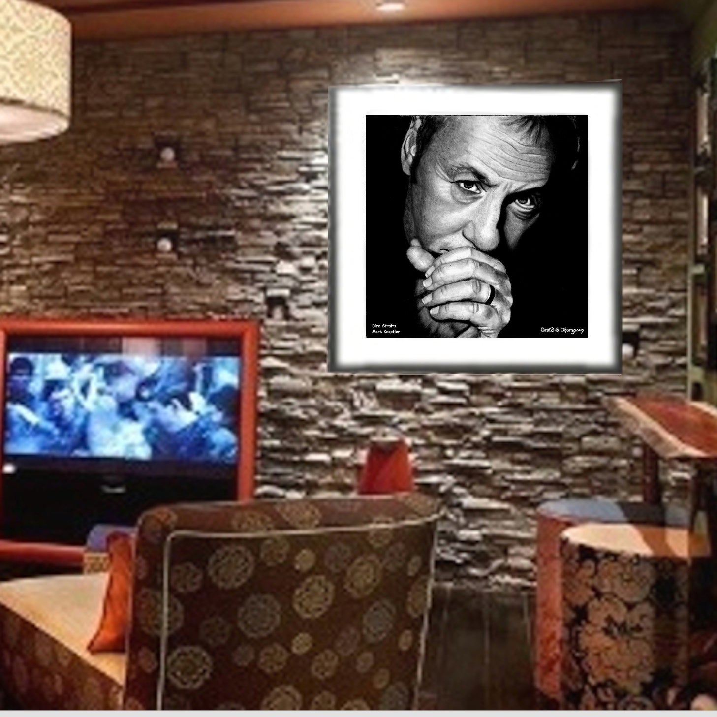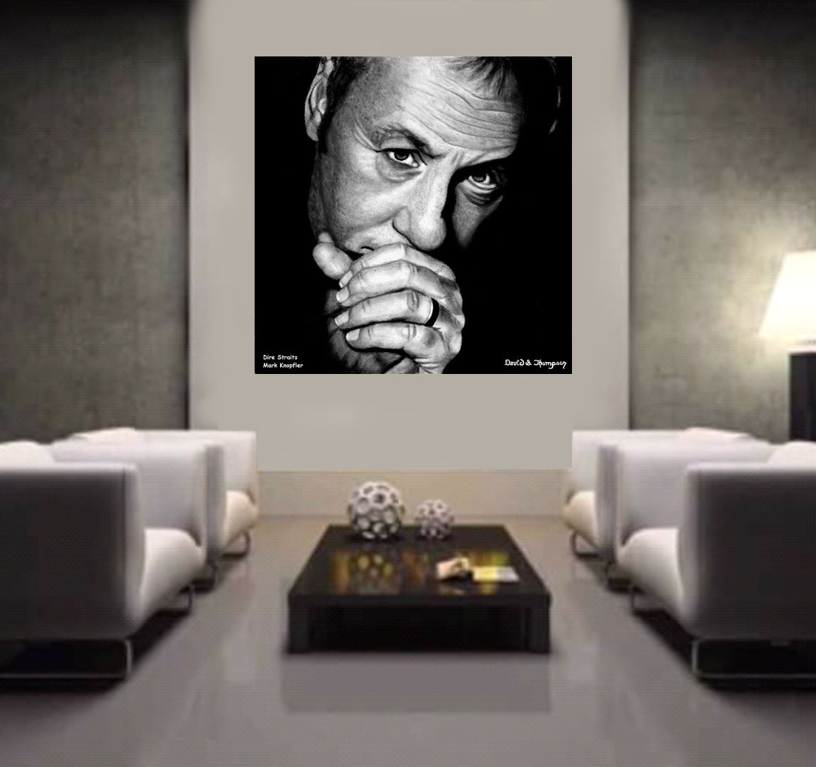 The Face of Music Limited Edition Hand Drawn Portrait by Master Artist David S. Thompson of Mark Knopfler from Dire Straits.