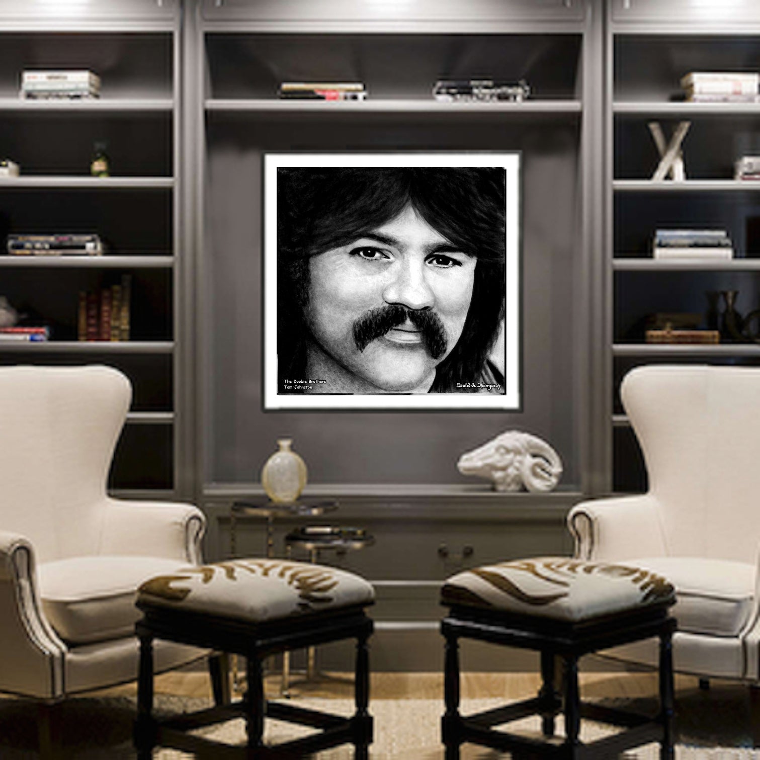 The Face of Music Limited Edition Hand Drawn Portrait by Master Artist David S. Thompson of Tom Johnston from The Doobie Brothers.