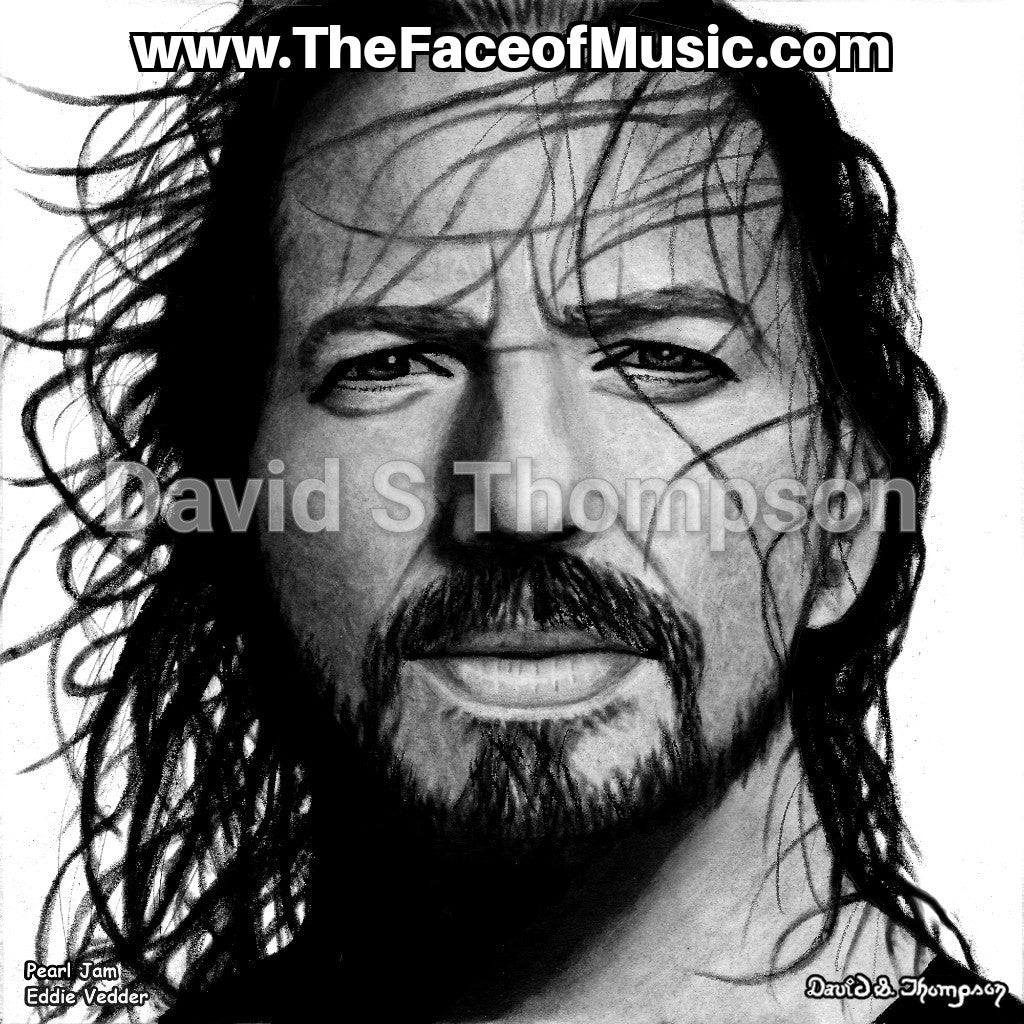 The Face of Music Limited Edition Hand Drawn Portrait by Master Artist David S. Thompson of Eddie Vedder from Pearl Jam.