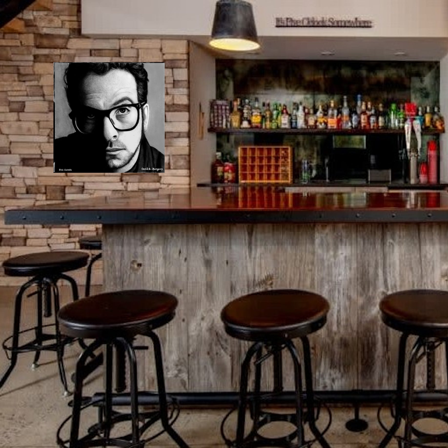 The Face of Music Limited Edition Hand Drawn Portrait by Master Artist David S. Thompson of Elvis Costello.