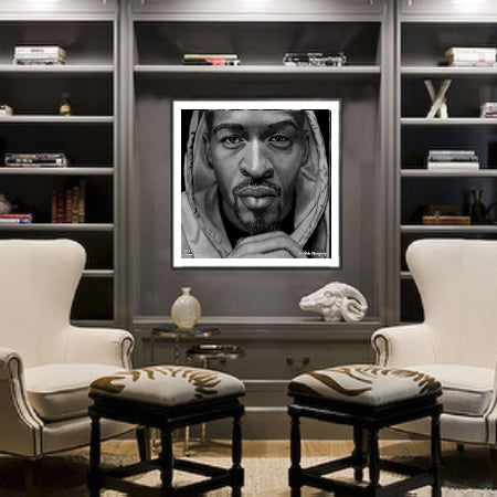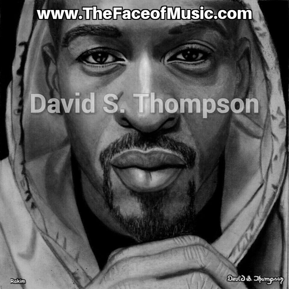 The Face of Music Limited Edition Hand Drawn Portrait by Master Artist David S. Thompson of Rakim from Eric B. and Rakim.