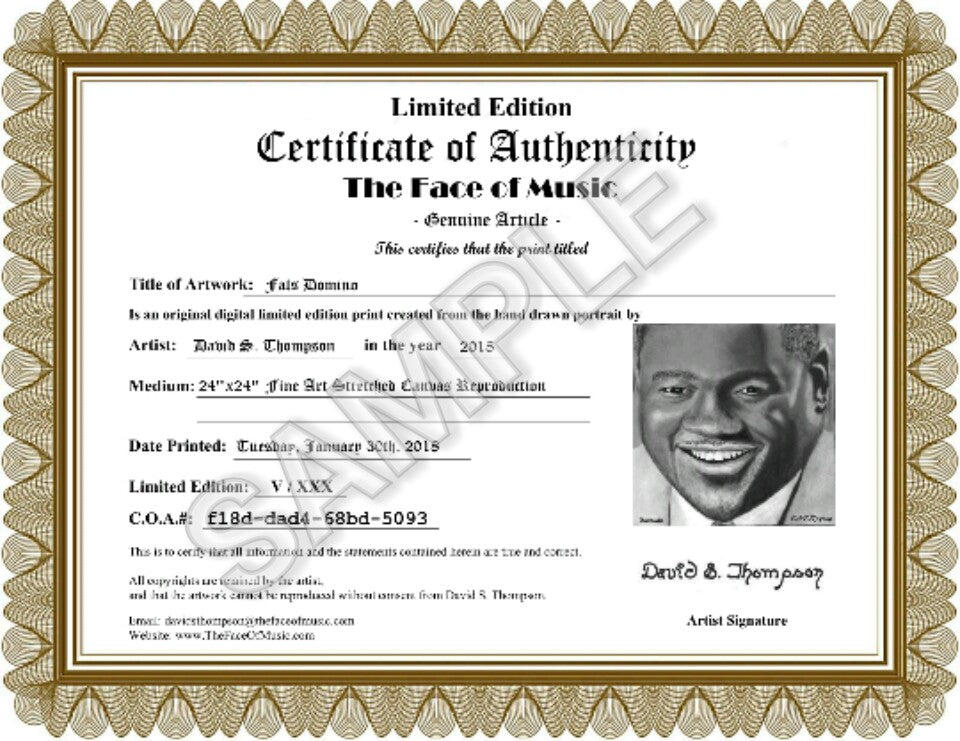 Each artwork is personally signed and is accompanied with an individual Limited Edition Certificate of Authenticity with its own unique C.O.A. Number and personal signature ensuring you're getting a unique The Face of Music portrait by Master Artist David S. Thompson.