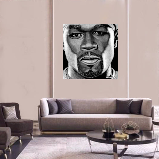 The Face of Music Limited Edition Hand Drawn Portrait by Master Artist David S. Thompson of 50 Cent.
