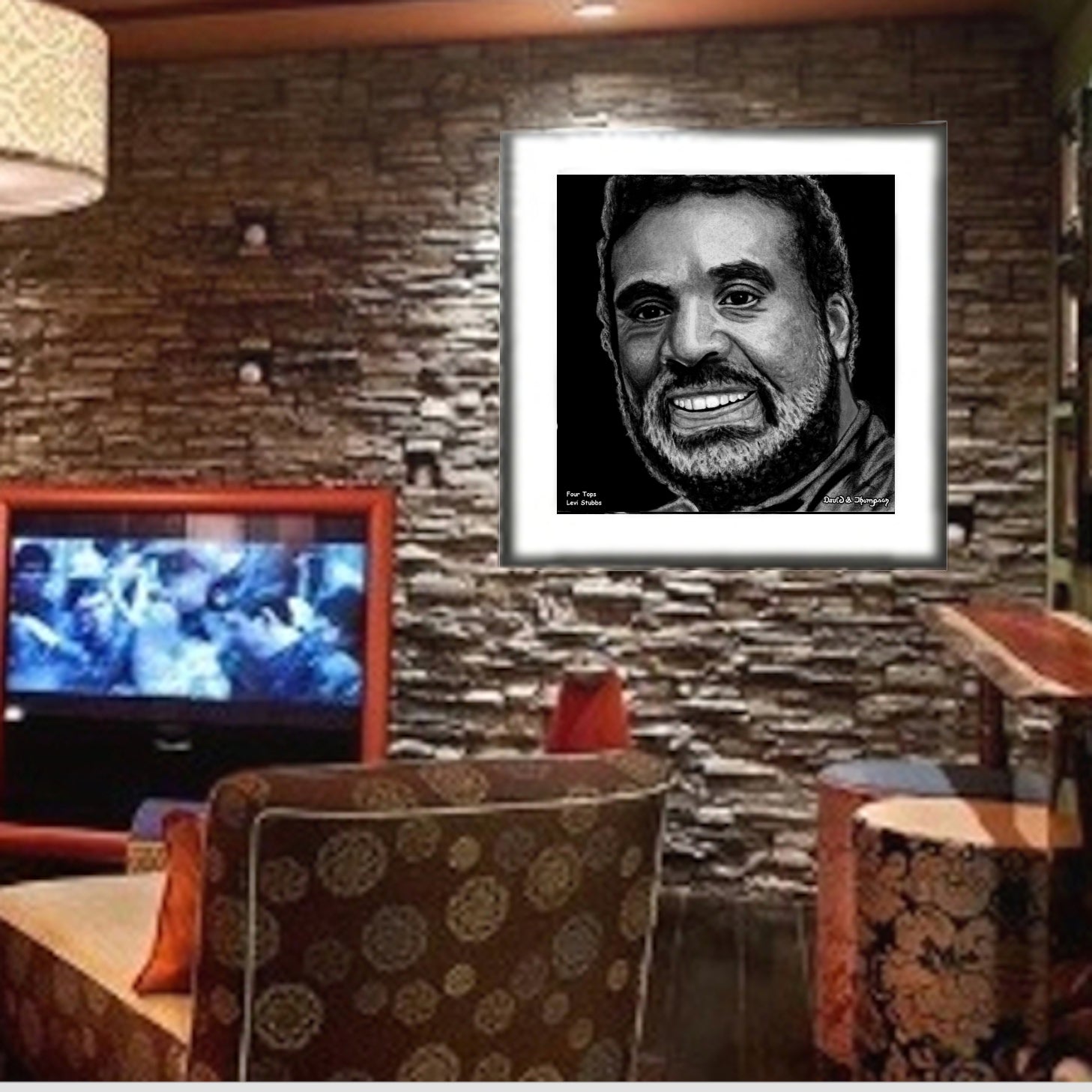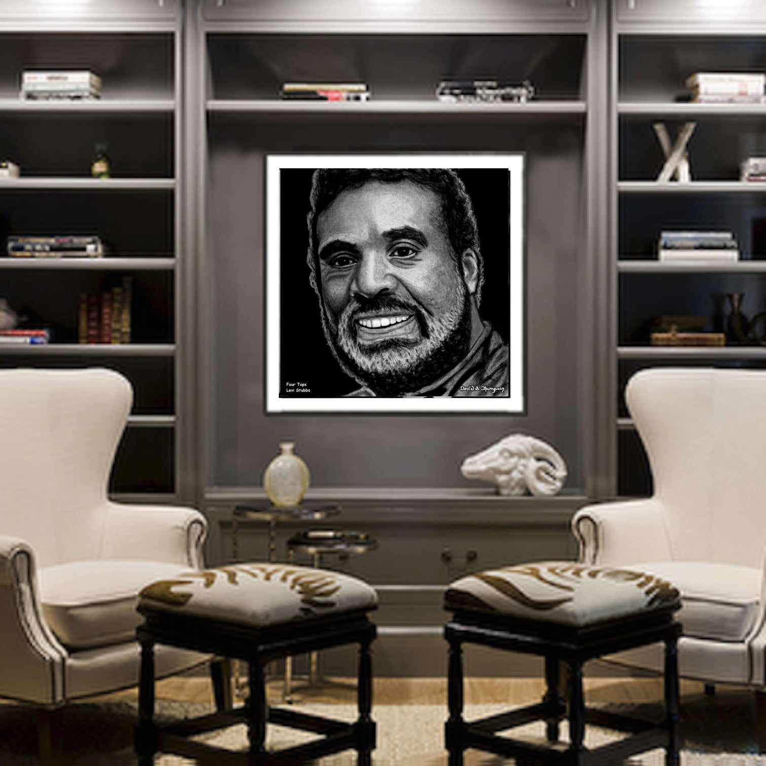The Face of Music Limited Edition Hand Drawn Portrait by Master Artist David S. Thompson of Levi Stubbs from the Four Tops.