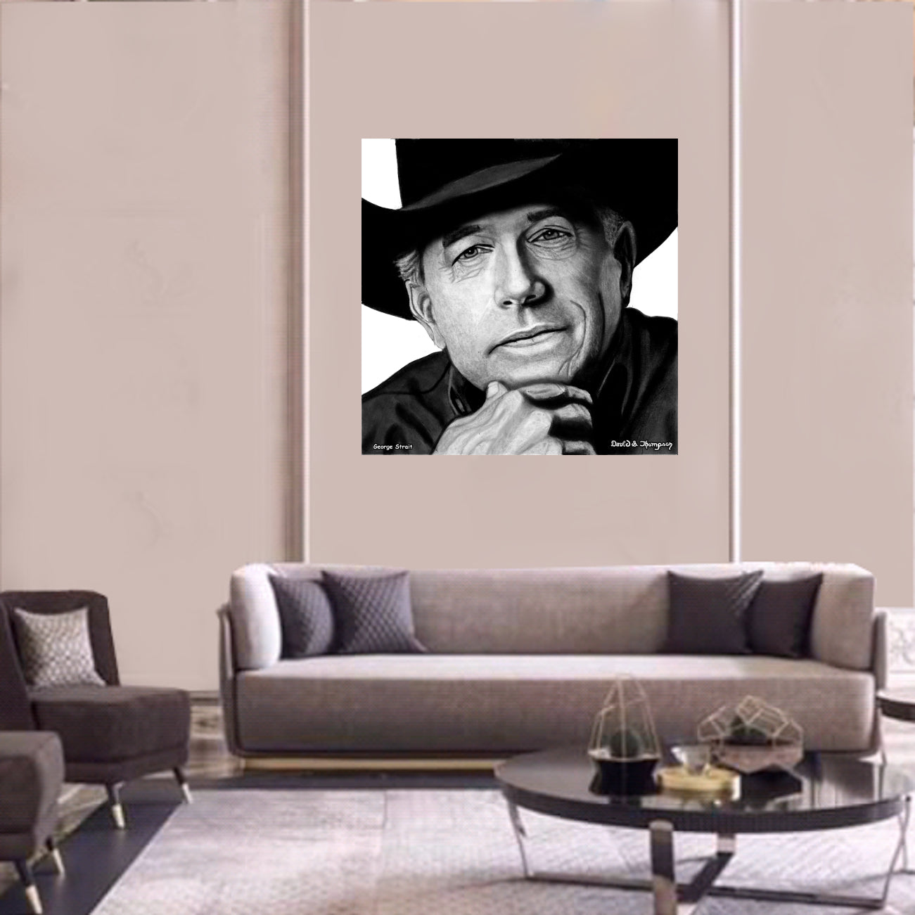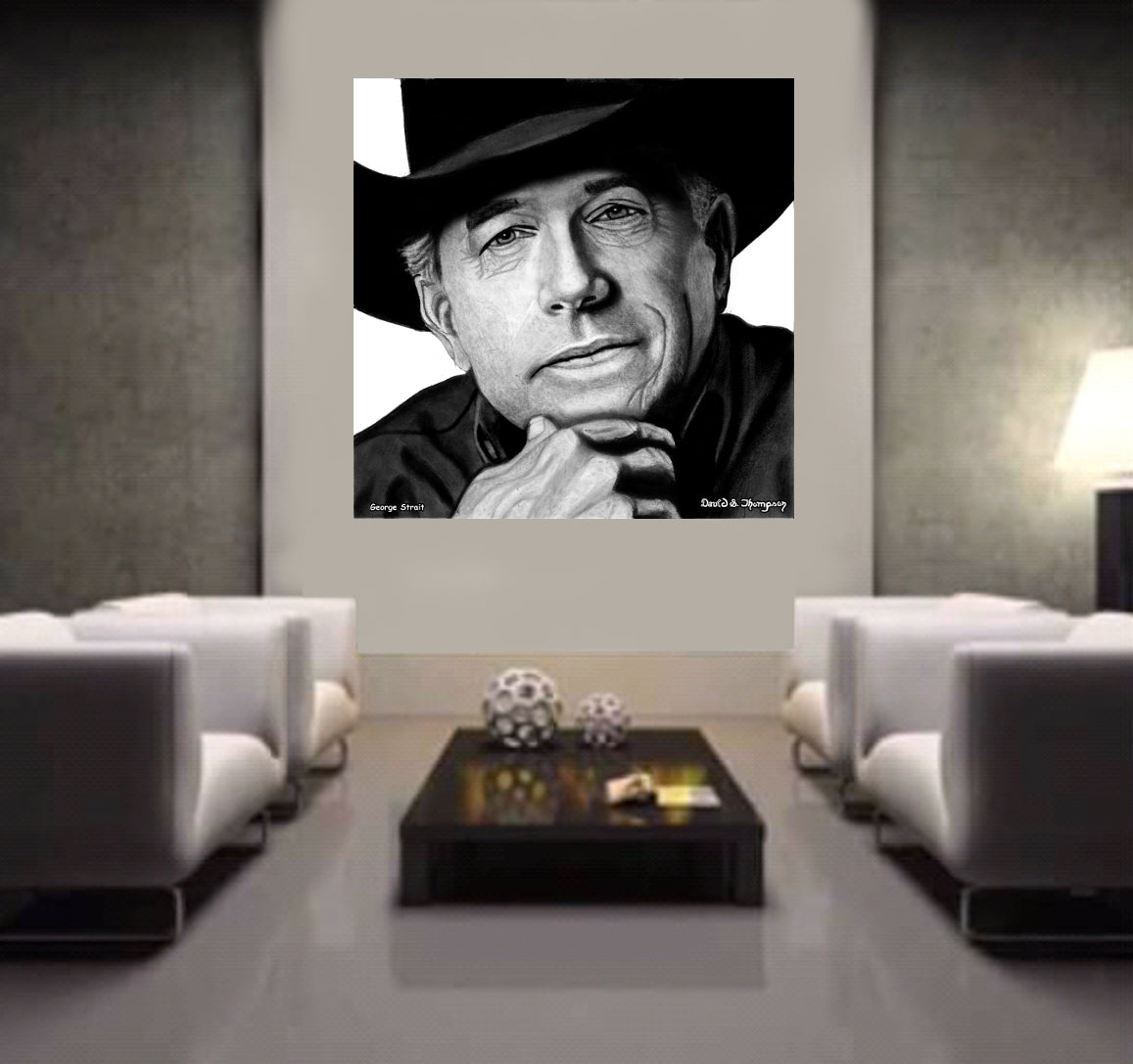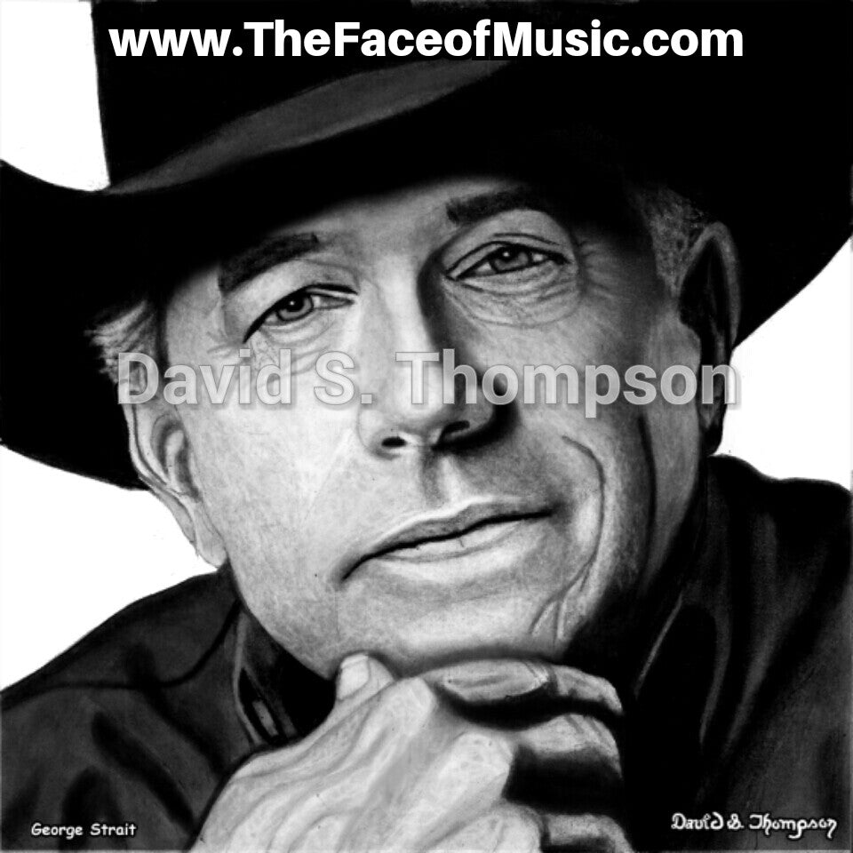The Face of Music Limited Edition Hand Drawn Portrait by Master Artist David S. Thompson of George Strait.