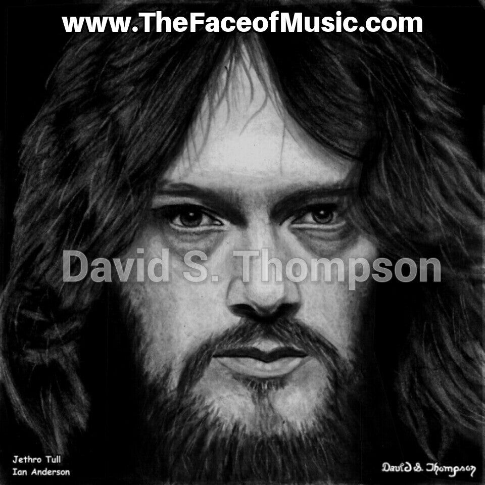 The Face of Music Limited Edition Hand Drawn Portrait by Master Artist David S. Thompson of Ian Anderson from Jethro Tull.