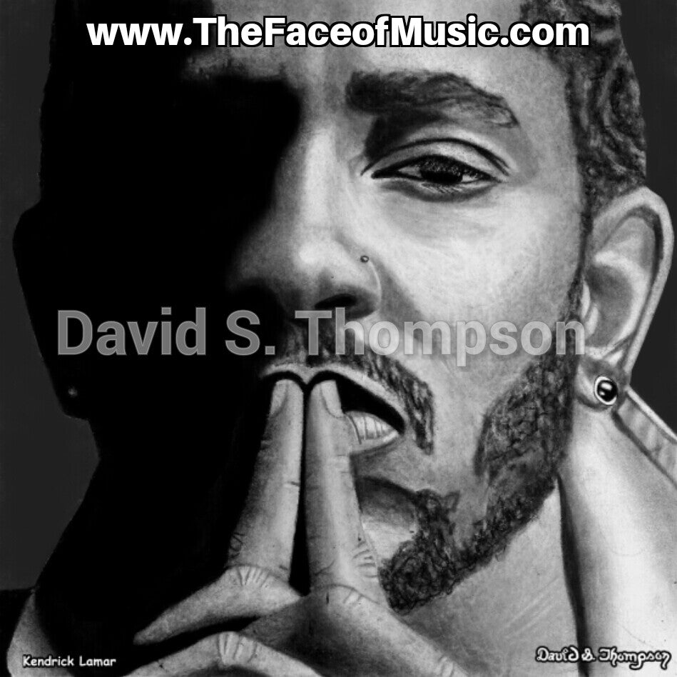 The Face of Music Limited Edition Hand Drawn Portrait by Master Artist David S. Thompson of Kendrick Lamar.