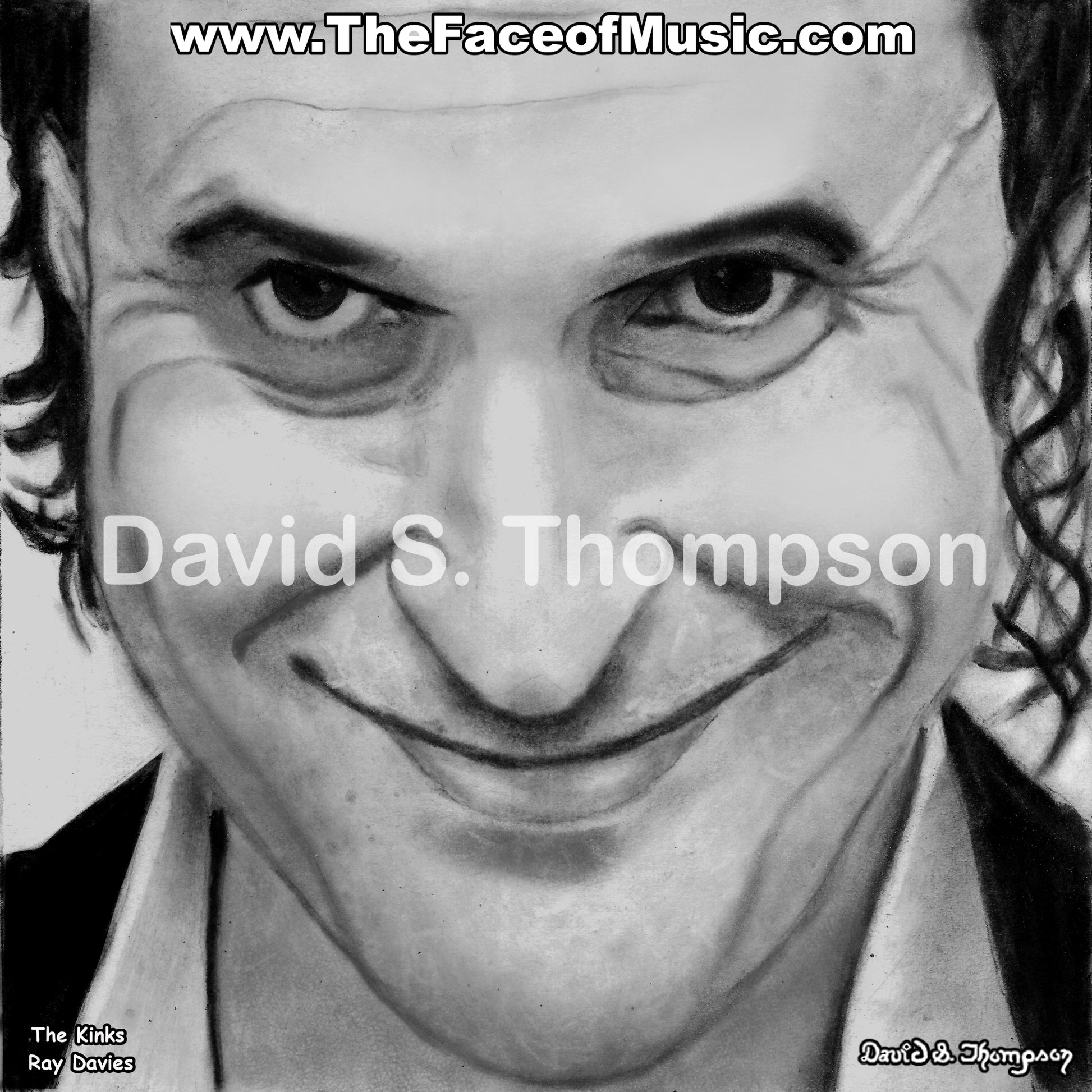 The Face of Music Limited Edition Hand Drawn Portrait by Master Artist David S. Thompson of Ray Davies from the Kinks.
