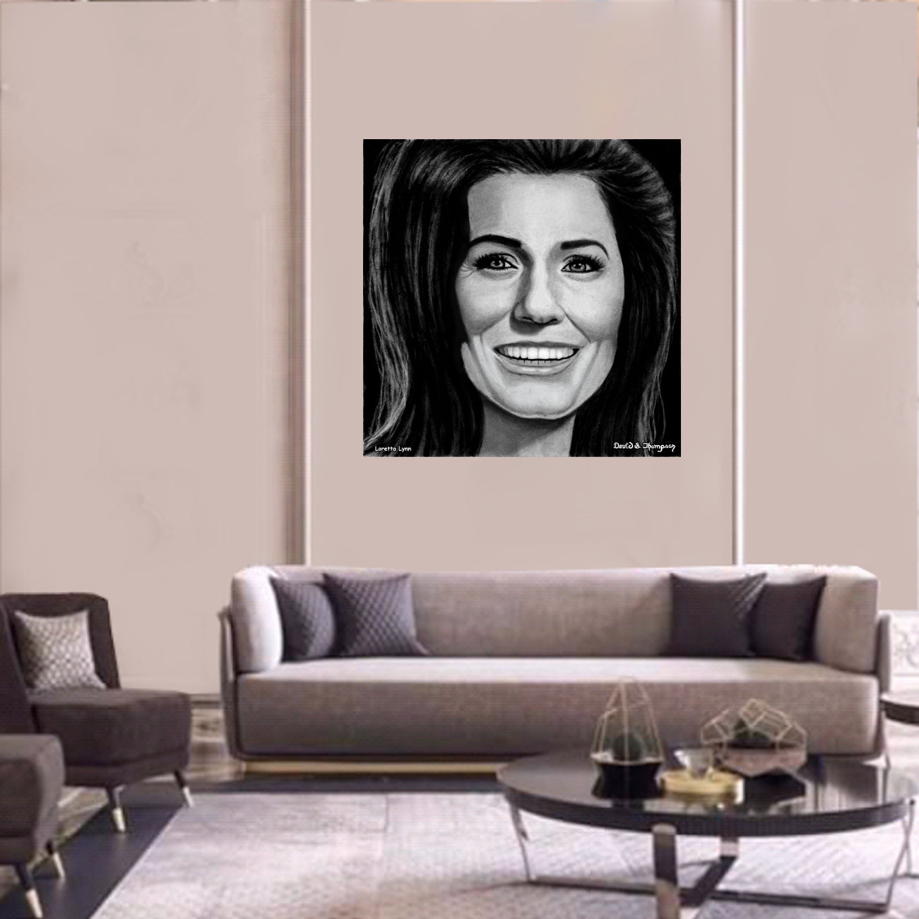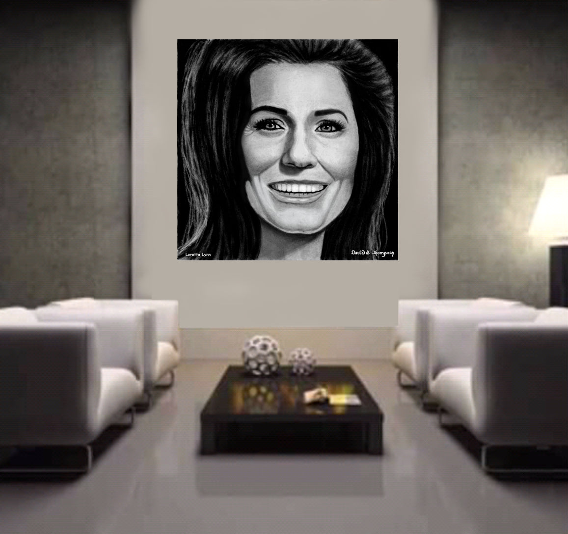 The Face of Music Limited Edition Hand Drawn Portrait by Master Artist David S. Thompson of Loretta Lynn.