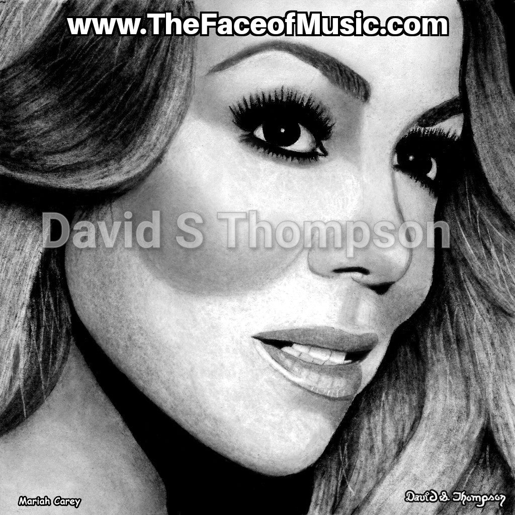 The Face of Music Limited Edition Hand Drawn Portrait by Master Artist David S. Thompson of Mariah Carey.