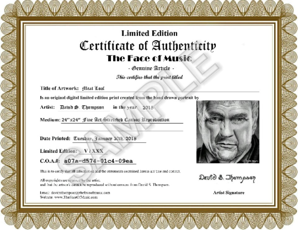 Each artwork is personally signed and is accompanied with an individual Limited Edition Certificate of Authenticity with its own unique C.O.A. Number and personal signature ensuring you're getting a unique The Face of Music portrait by Master Artist David S. Thompson.
