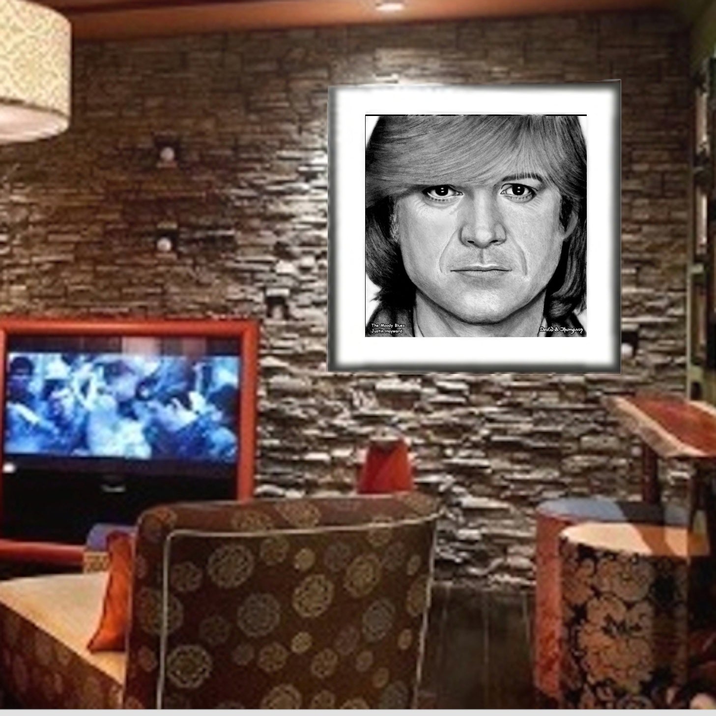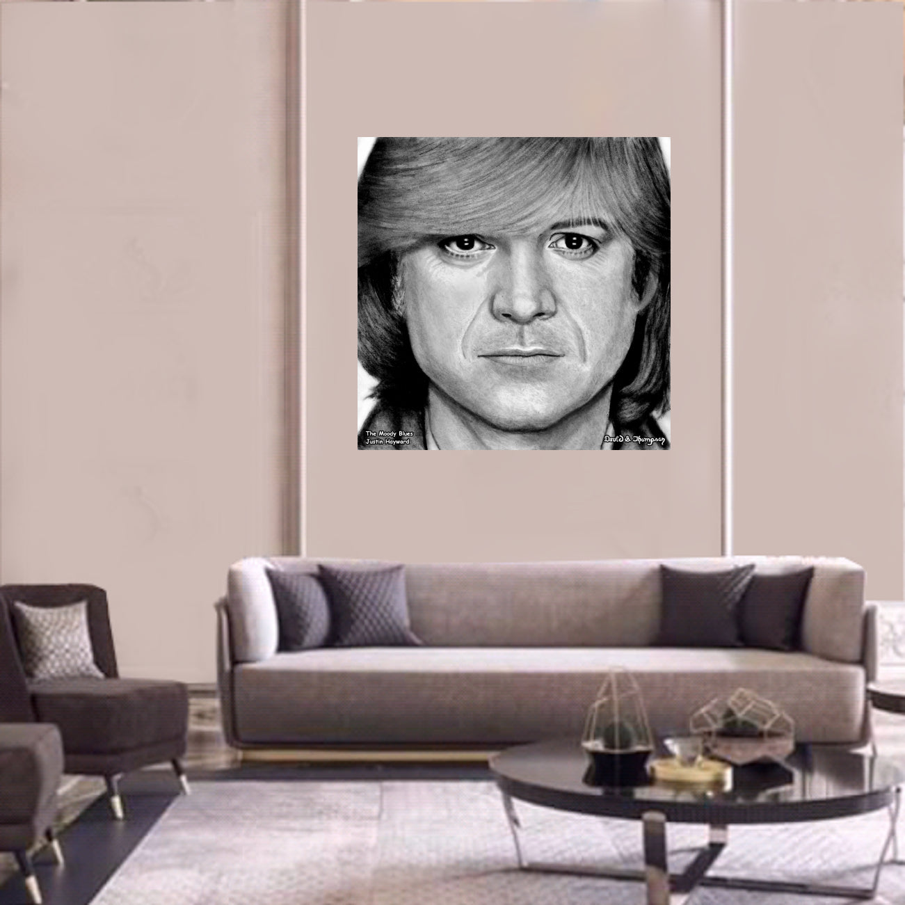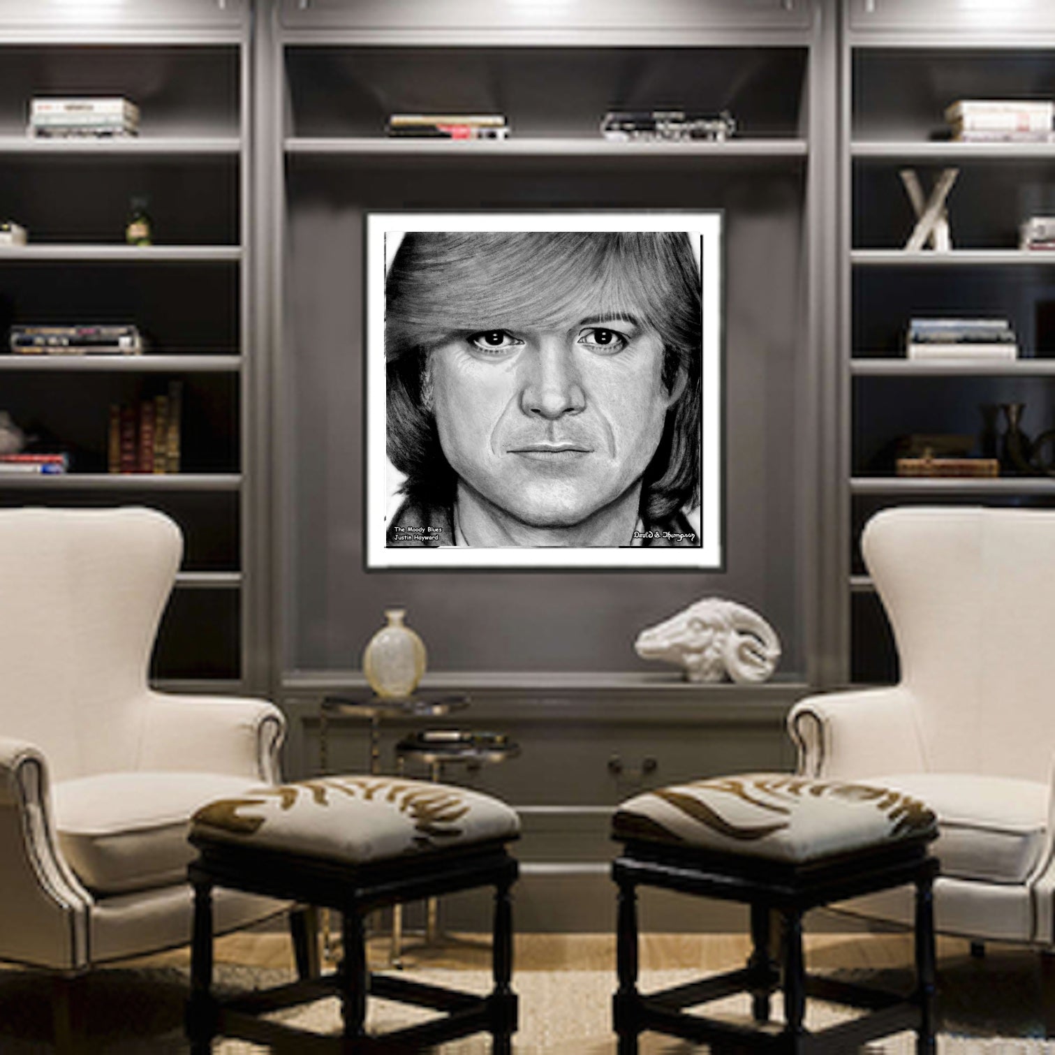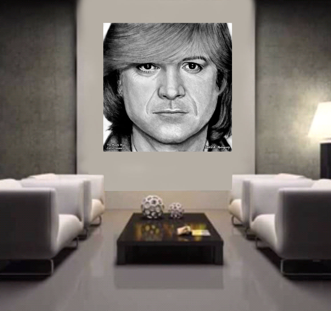 The Face of Music Limited Edition Hand Drawn Portrait by Master Artist David S. Thompson of Justin Hayward from The Moody Blues.