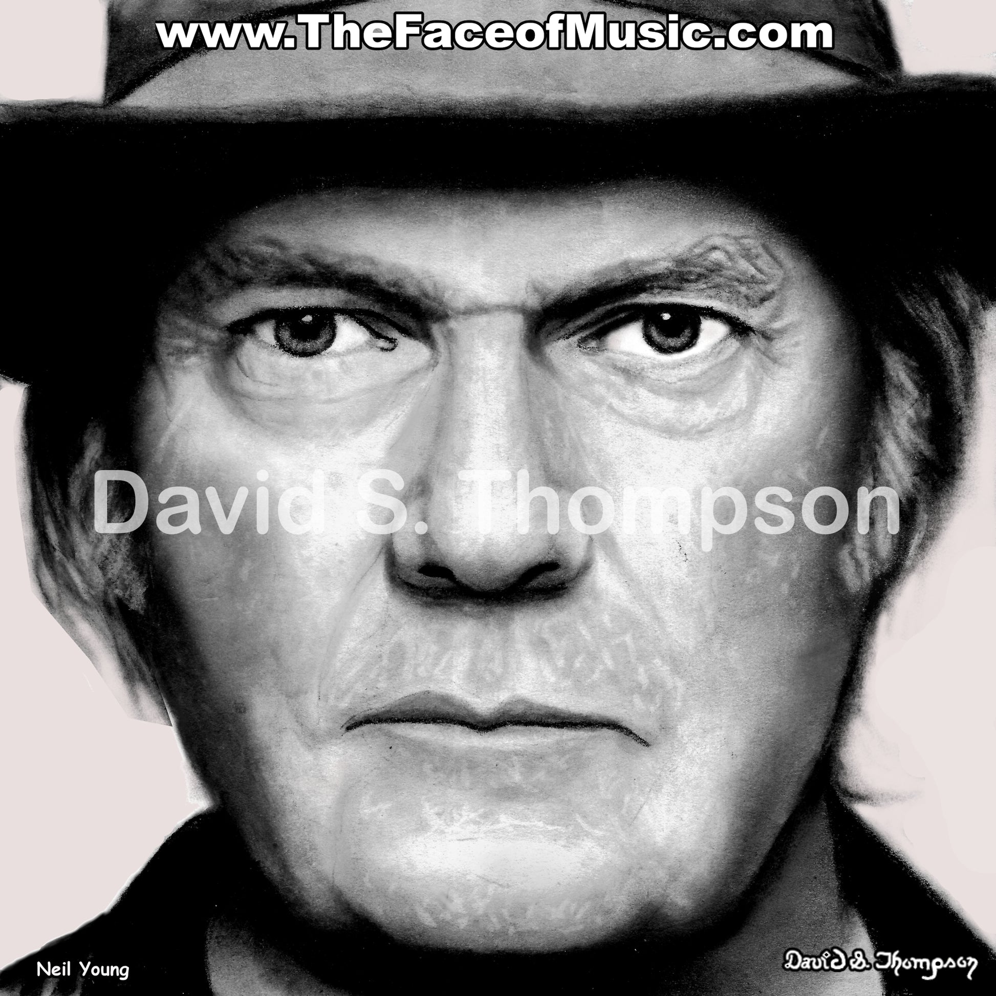 The Face of Music Limited Edition Hand Drawn Portrait by Master Artist David S. Thompson of Neil Young.