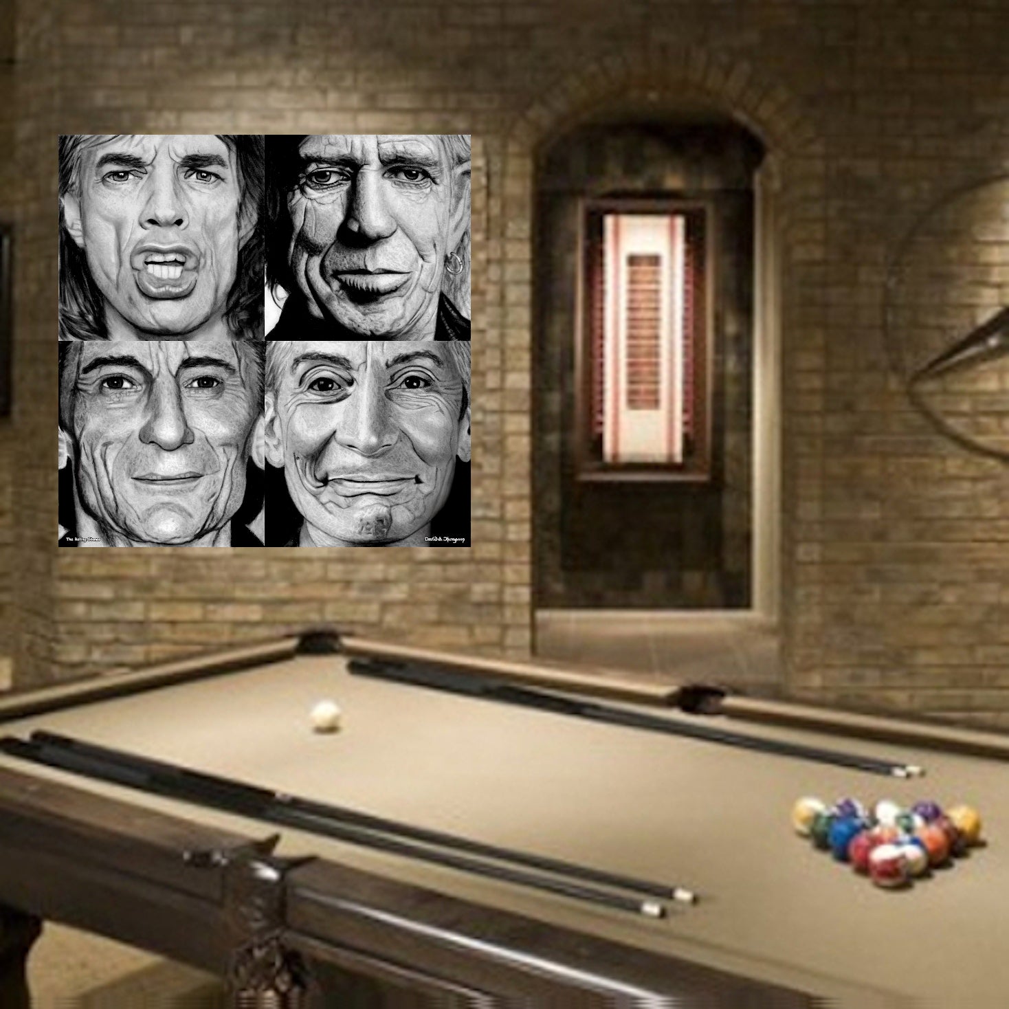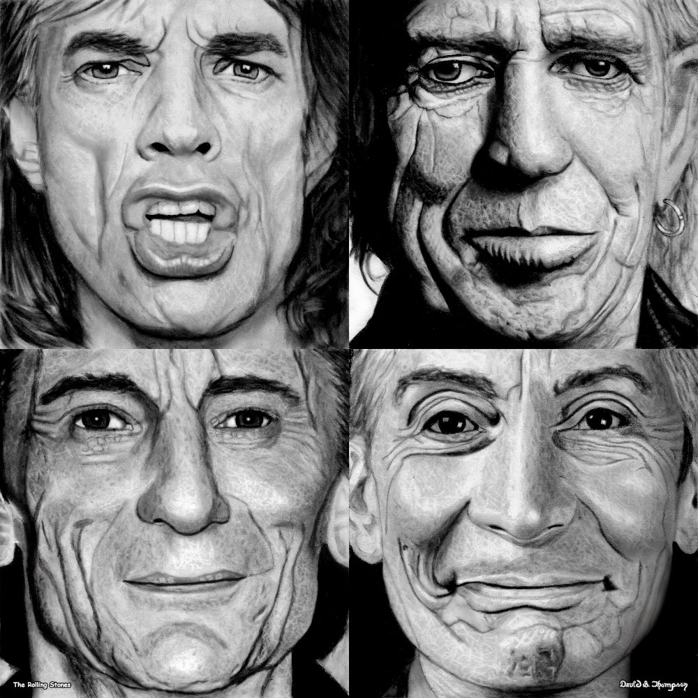 The Face of Music Limited Edition Hand Drawn Masterpiece Portrait Collection by Master Artist David S. Thompson of Mick Jagger, Keith Richards, Ronnie Wood and Charlie Watts from The Rolling Stones.