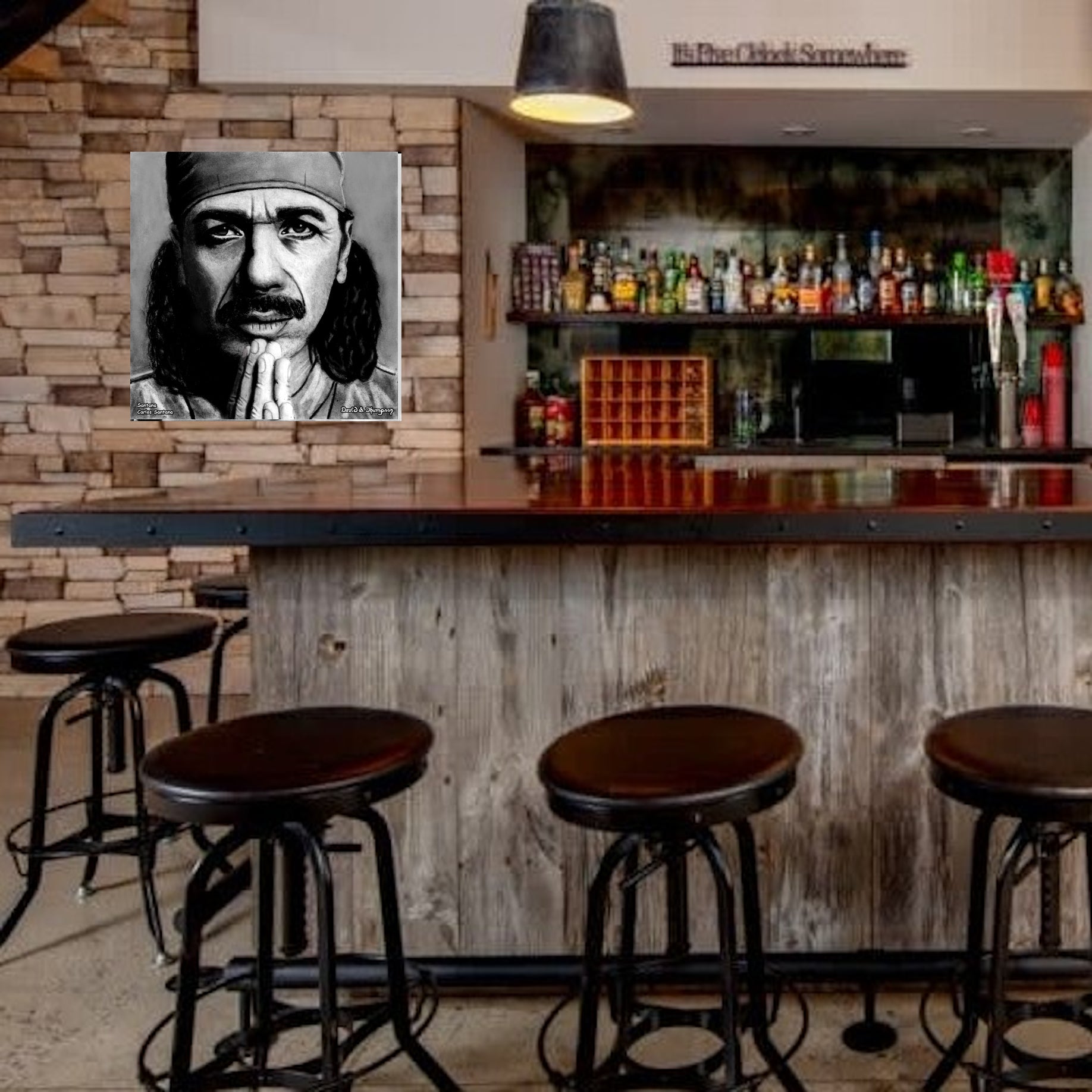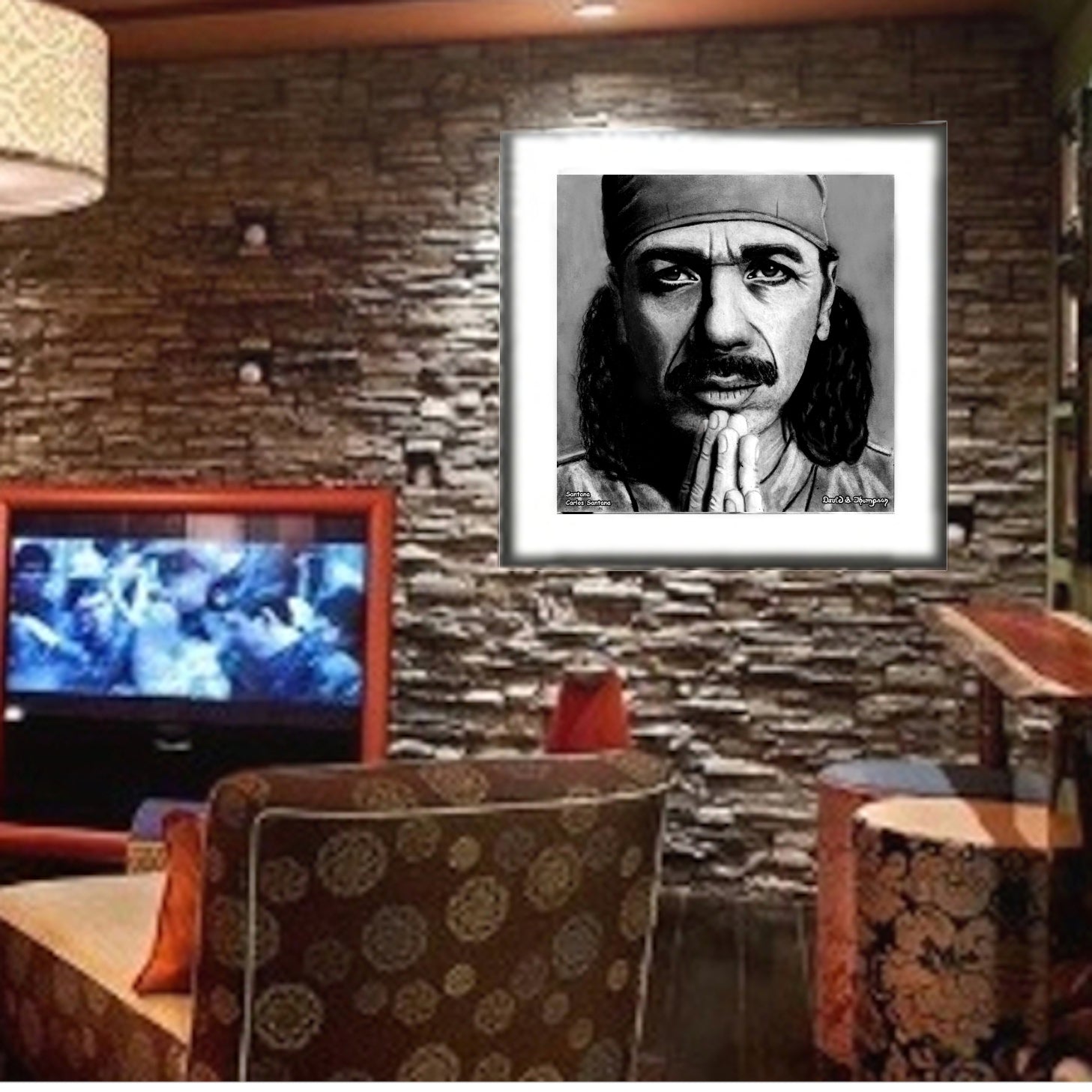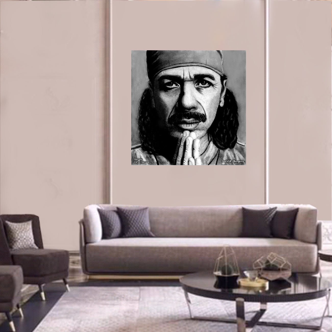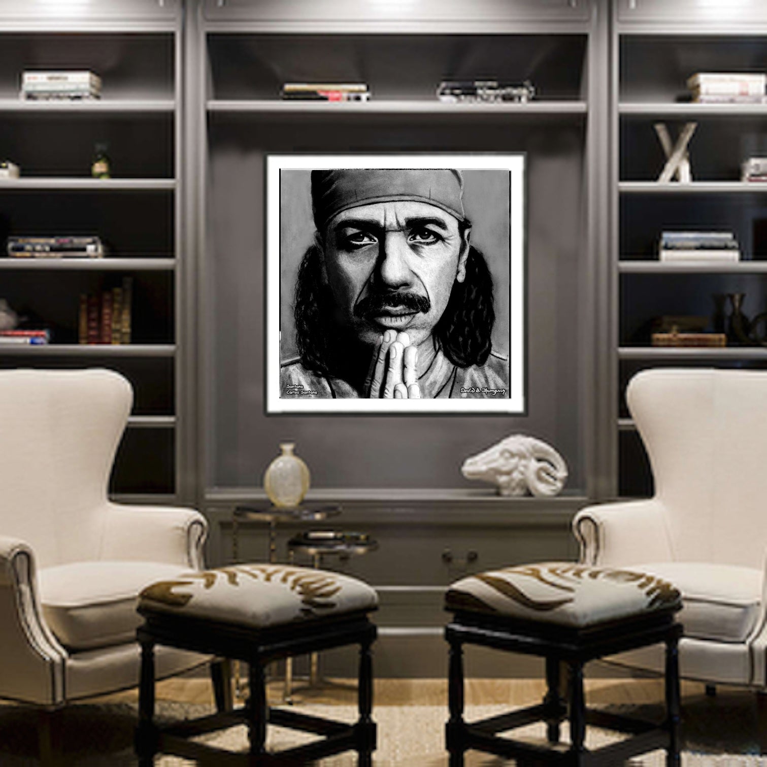 The Face of Music Limited Edition Hand Drawn Portrait by Master Artist David S. Thompson of Carlos Santana from Santana.