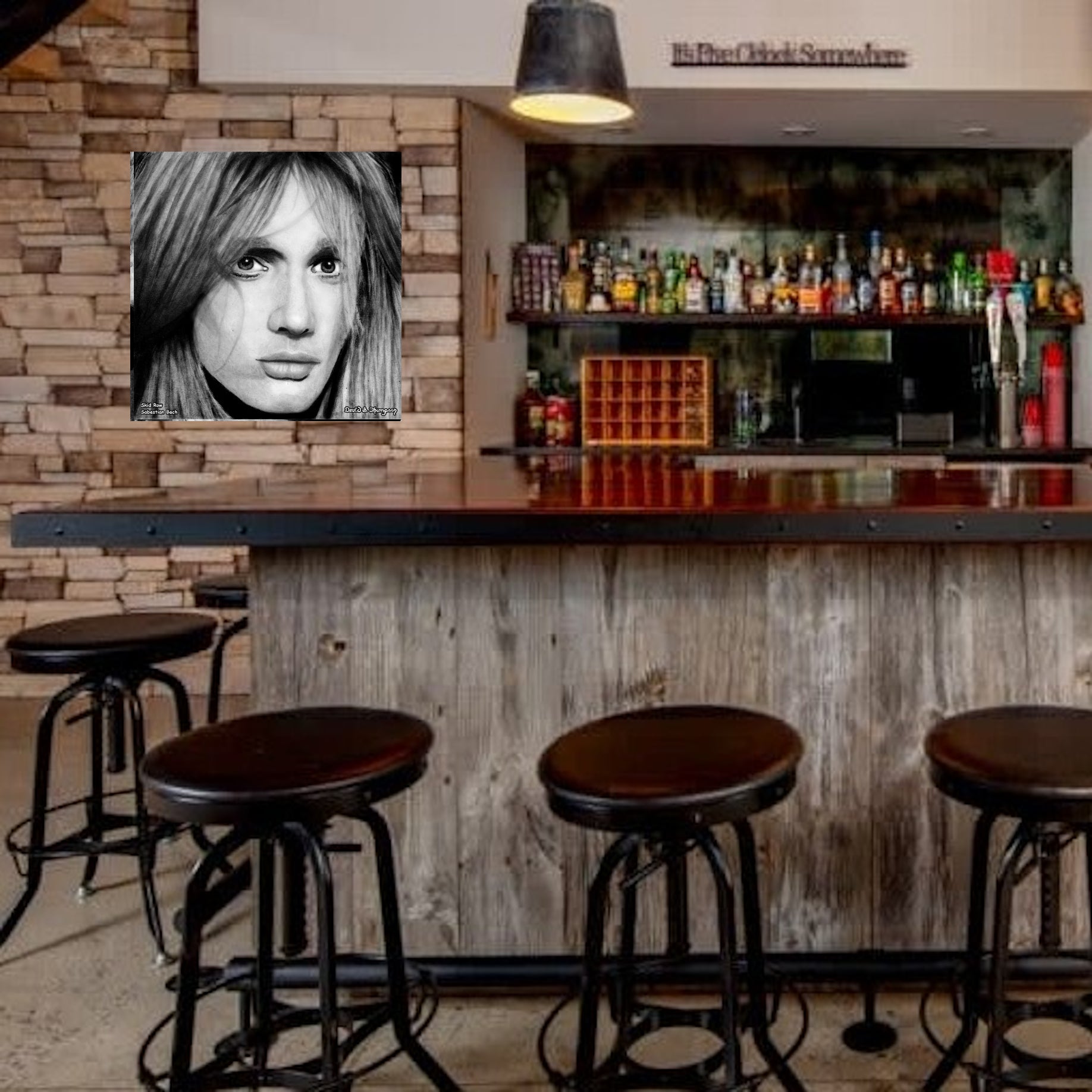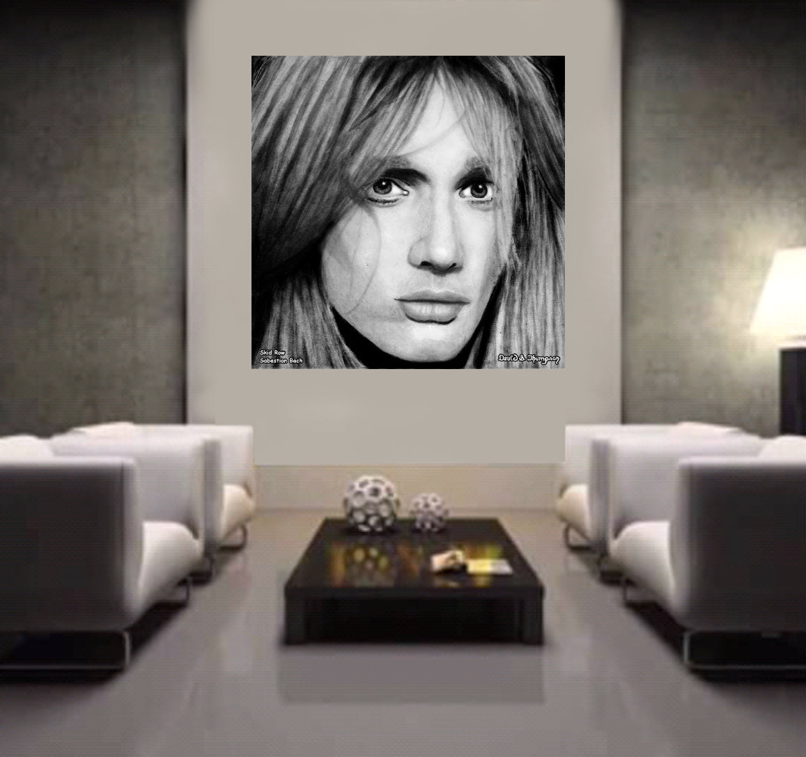 The Face of Music Limited Edition Hand Drawn Portrait by Master Artist David S. Thompson of Sabastian Bach from Skid Row.