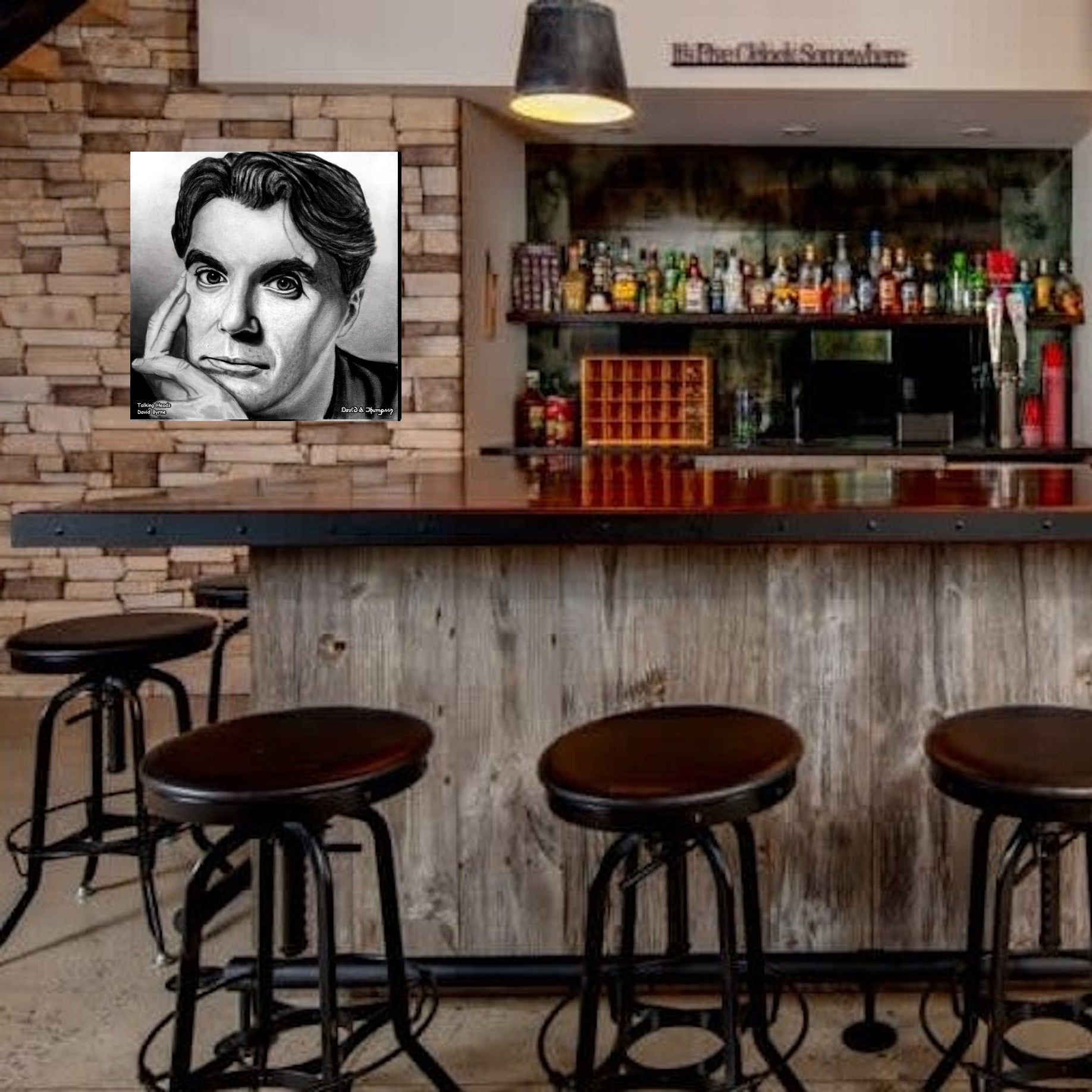 The Face of Music Limited Edition Hand Drawn Portrait by Master Artist David S. Thompson of David Byrne from Talking Heads.
