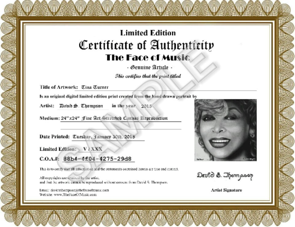 The Face of Music Limited Edition Hand Drawn Portrait by Master Artist David S. Thompson of Tina Turner.