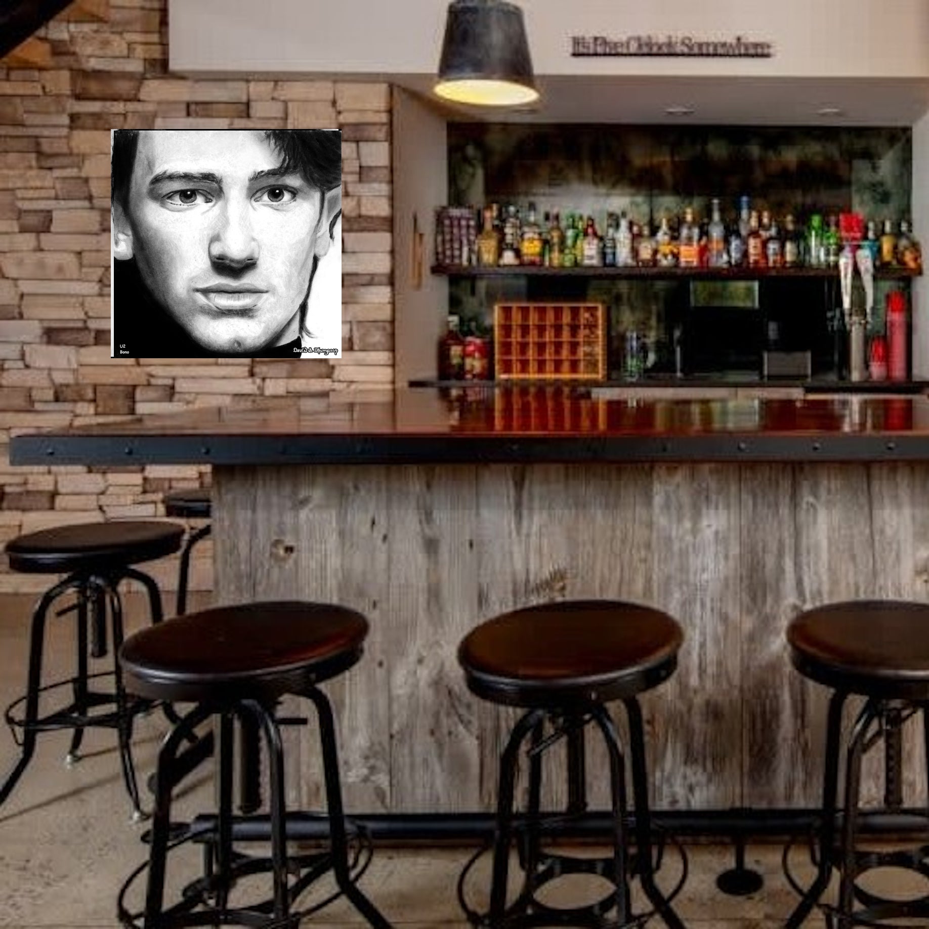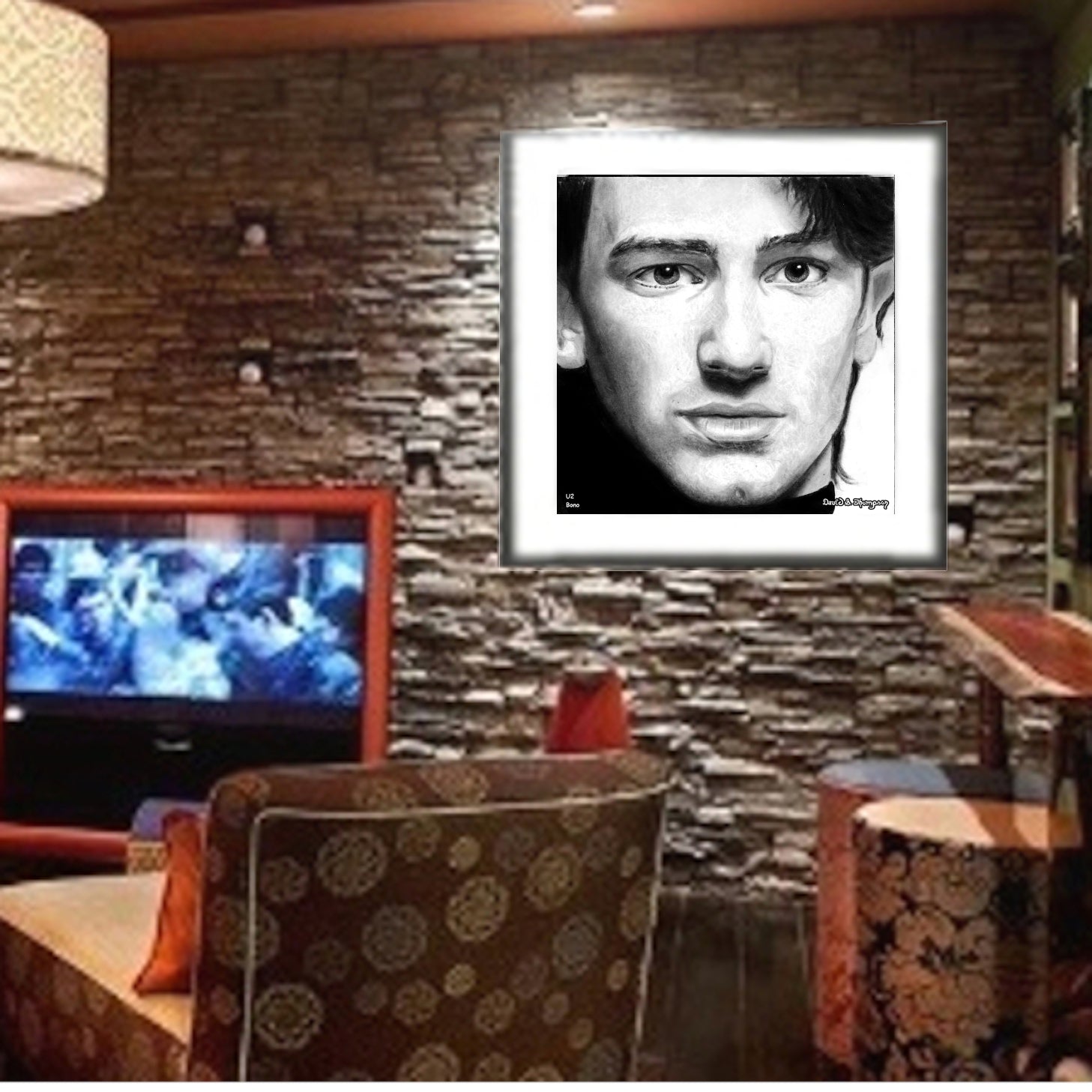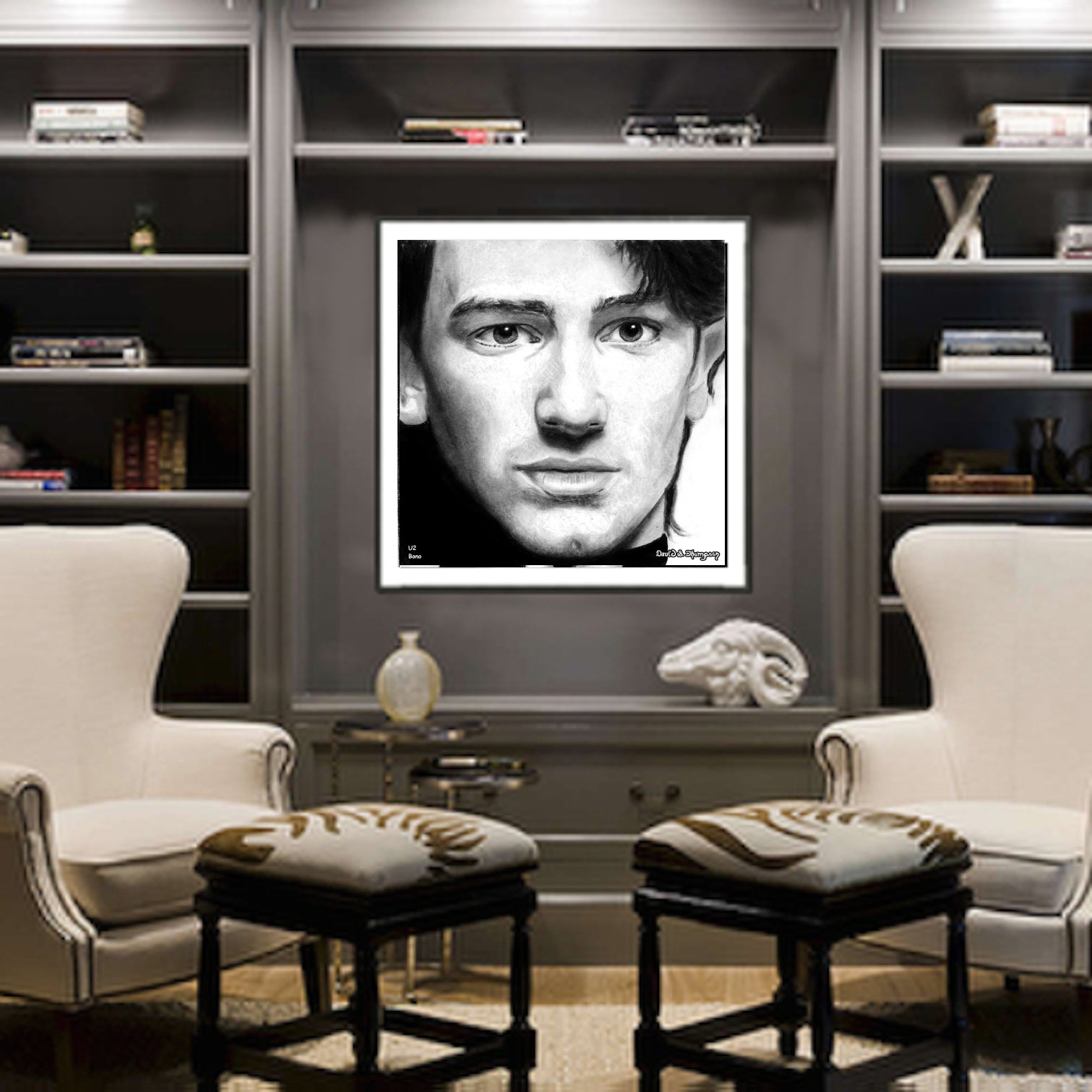 The Face of Music Limited Edition Hand Drawn Portrait by Master Artist David S. Thompson of Bono from U2.