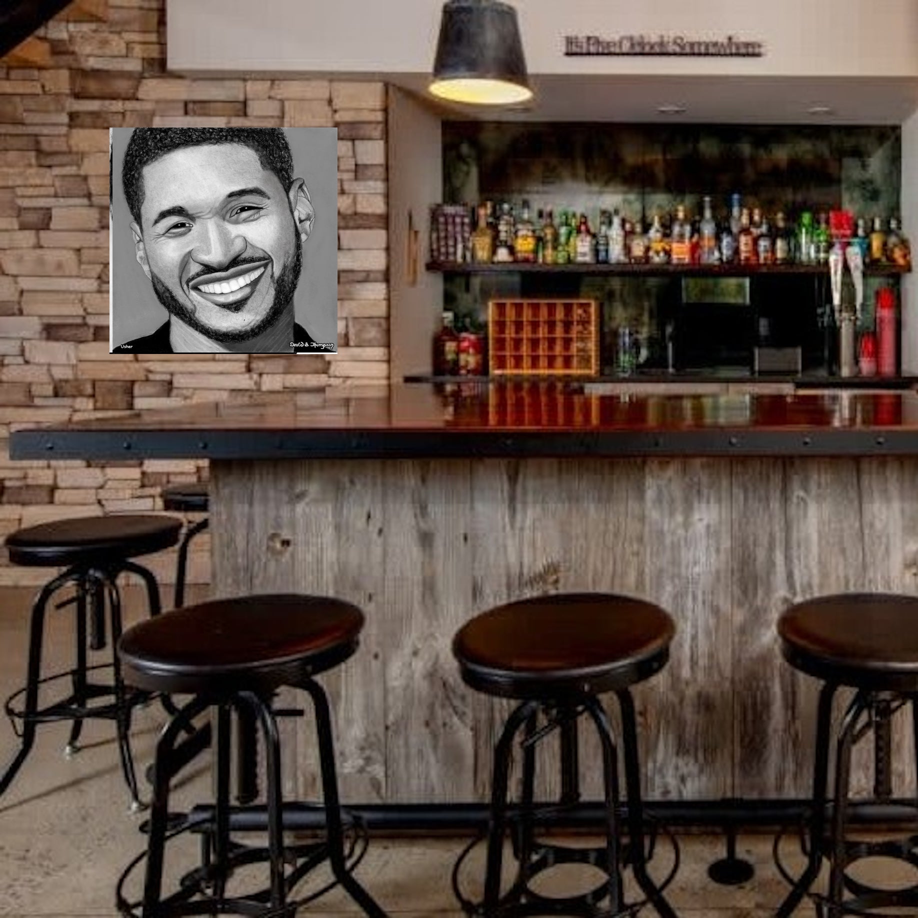 The Face of Music Limited Edition Hand Drawn Portrait by Master Artist David S. Thompson of Usher.